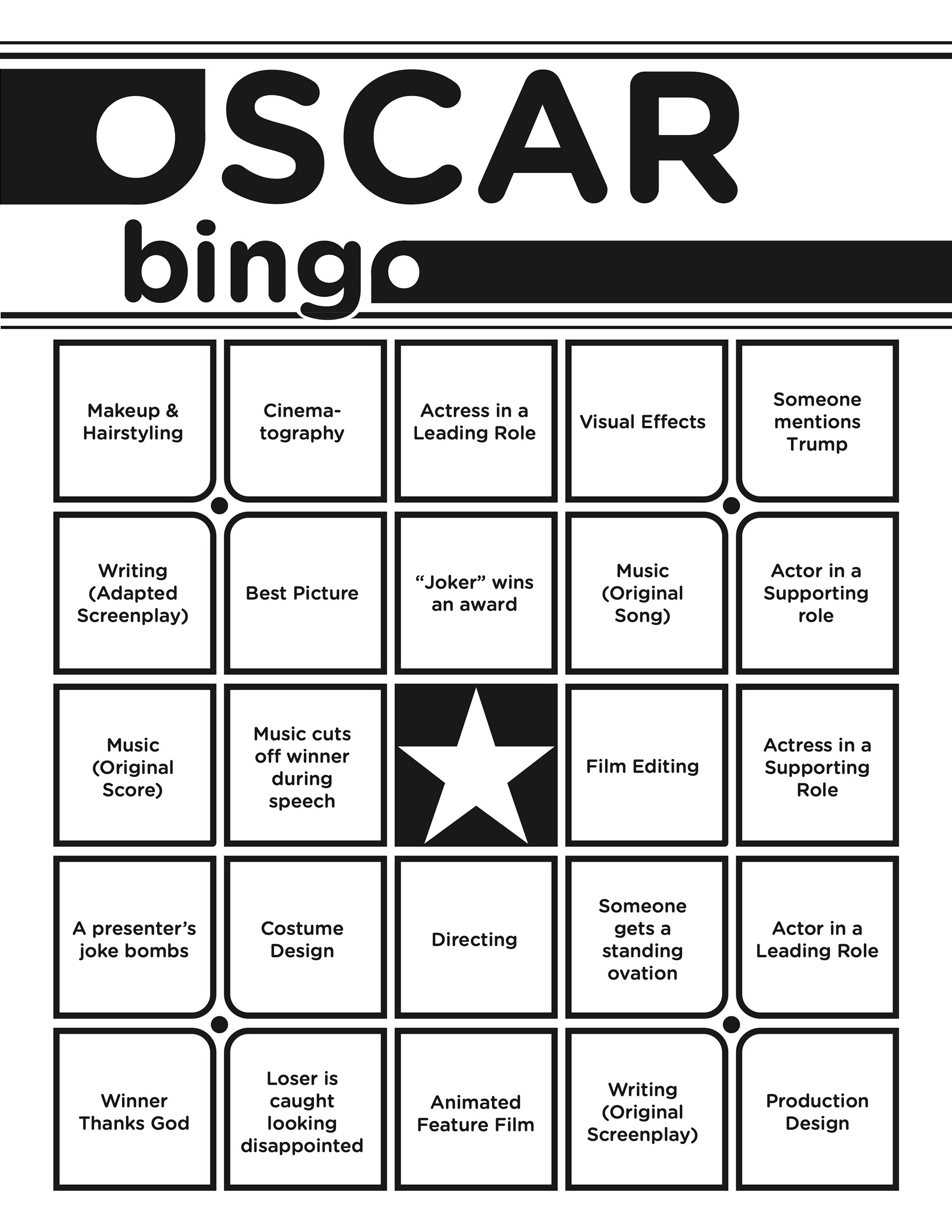 2020 Oscar Bingo Game